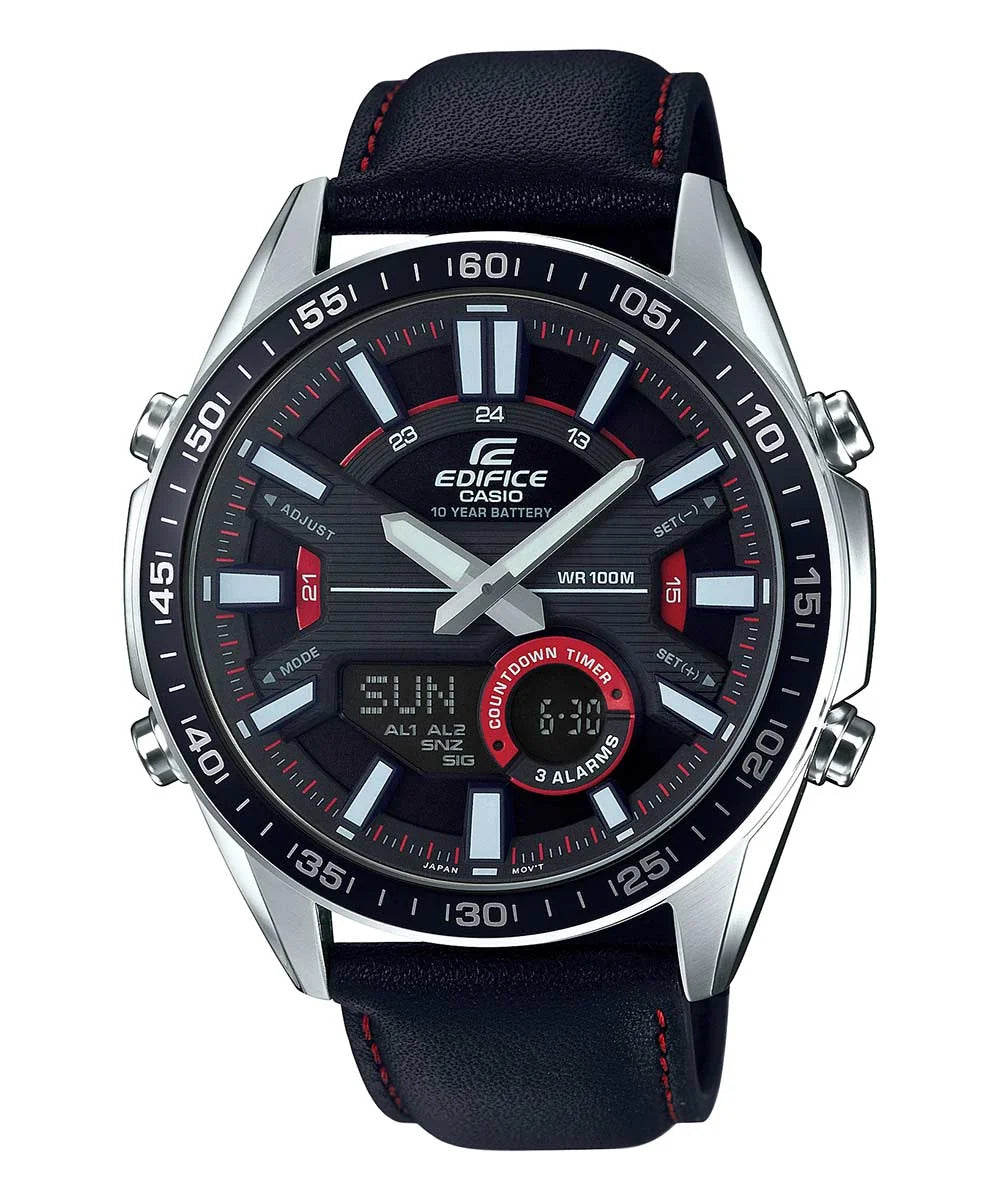 This watch is an analog/digital combination model. The model displays a full range of functions, including world time, stopwatch, and timer functions on its LCD. The two-layered, three dimensional dial creates a dynamic, sporty design. An ideal model for everyday use. Uses a genuine leather band.