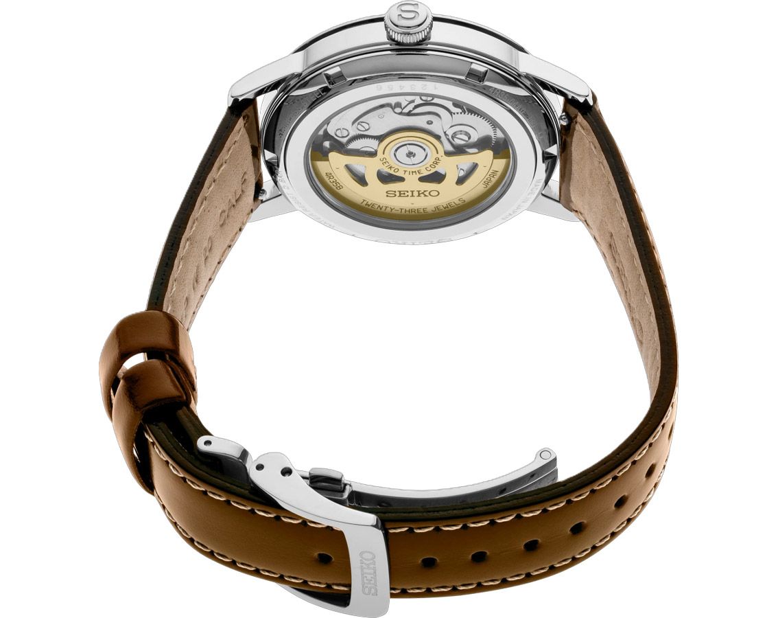 Powered by a trusted Seiko automatic movement, the SRPE45J1 winds with your natural wrist motion—no battery required—ensuring smooth and consistent performance throughout your day. Its stainless‑steel case offers durability and comfort, while the clean, well‑balanced dial enhances readability and adds a touch of modern elegance.